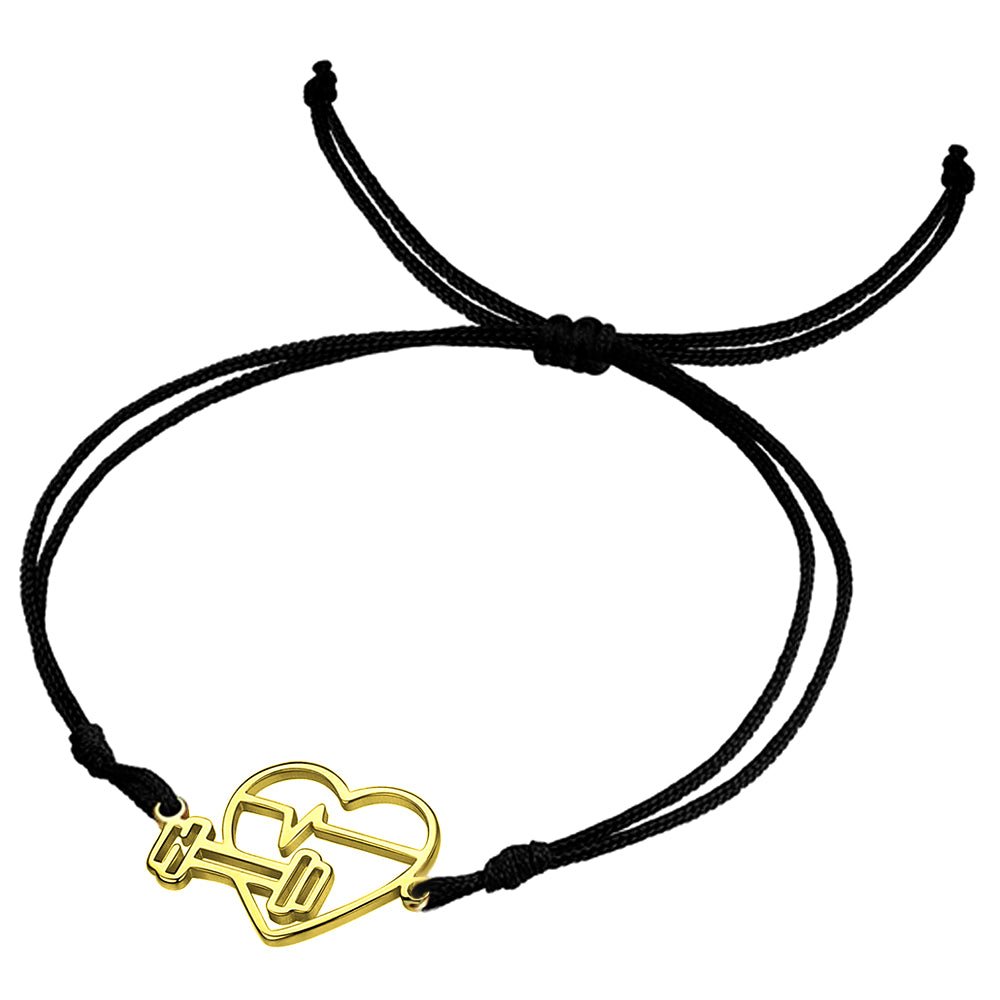 Pulsera Corazón Fitness Dorado con Amarra de Hilo Negro JUNGLE FIT