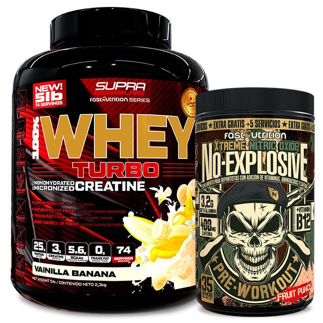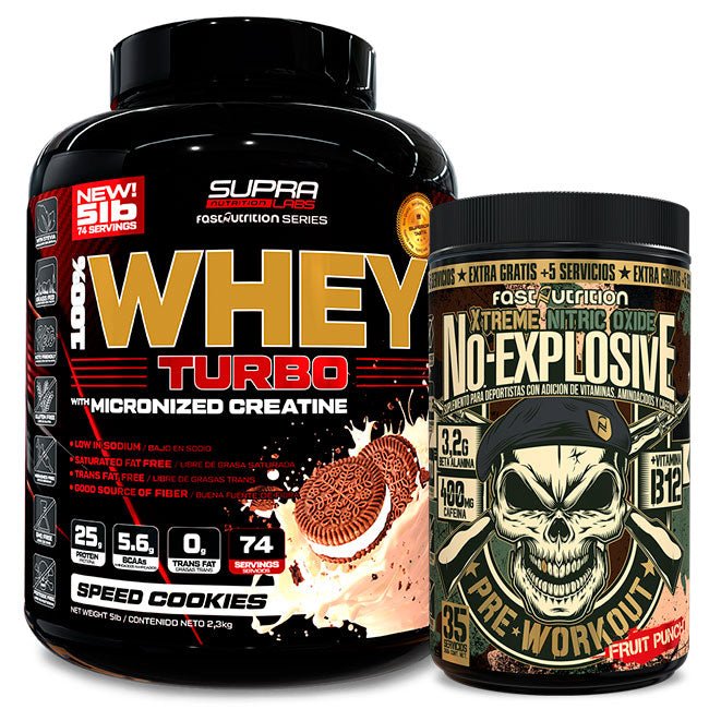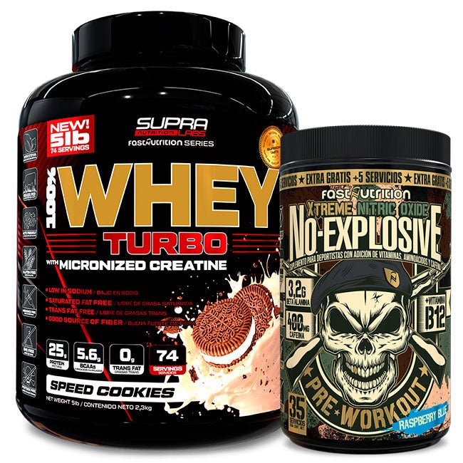 Pack Pre Workout N.O. Explosive 350 Grs + 100% Whey Turbo 5 Lbs Fast Nutrition