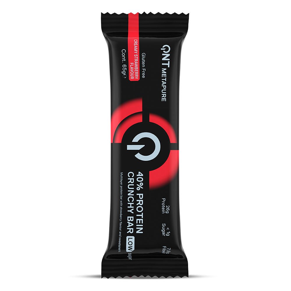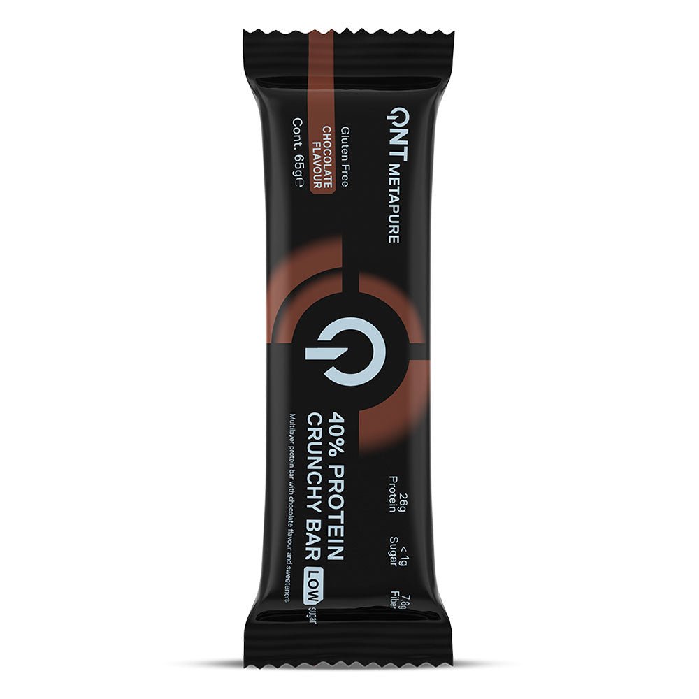 40% Protein Crunchy Bar es una excelente manera de darle a tu cuerpo la proteína que necesita. 26g de proteína recubierta de delicioso chocolate y crujiente para darte una sensación de placer sin sentirte culpable. Es un snack verdaderamente equilibrado, con mucha proteína de calidad (procedente de una mezcla de diferentes proteínas), 16 g de carbohidratos (pero sólo 0,8 g de azúcar) y sólo 8,5 g de grasas buenas.
