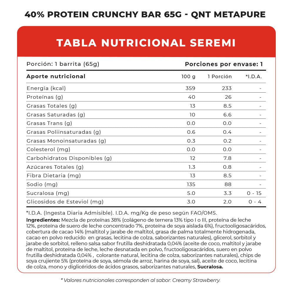 El tamaño de 65 g y su práctico formato son perfectos para un snack que se puede llevar a cualquier parte y comer en el trabajo, en la escuela, en una excursión o practicando deportes al aire libre. Su excelente sabor los convierte en una alternativa real a los snacks habituales, pero sin el alto contenido de grasas y azúcares que suelen asociarse a ellos. Este es el snack que estás buscando si quieres mantenerte en forma y divertirte al mismo tiempo. ¡Comer barrita crujiente con un 40% de proteína es una forma inteligente de disfrutar!