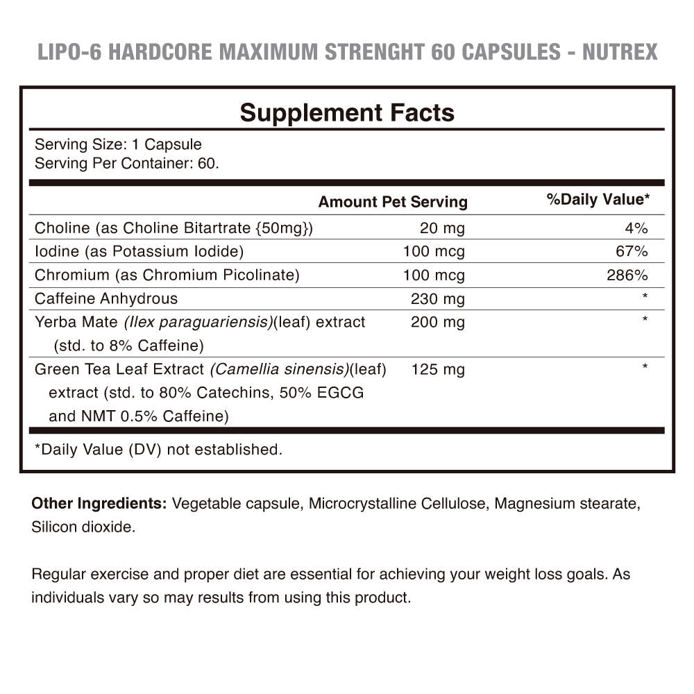Lipo 6 Hardcore Maximum Strength 60 Caps Nutrex