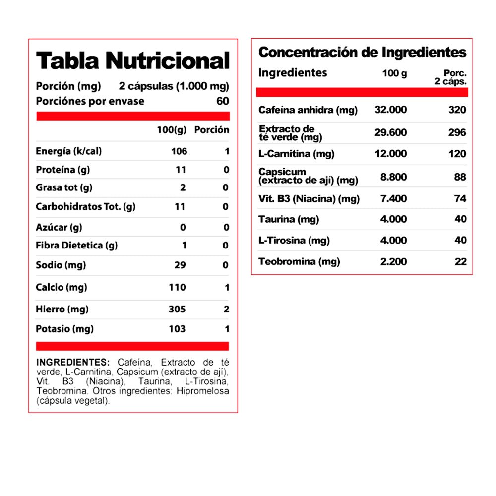 • Producto contiene cafeína, además de té verde, L-carnitina, vitaminas y minerales.