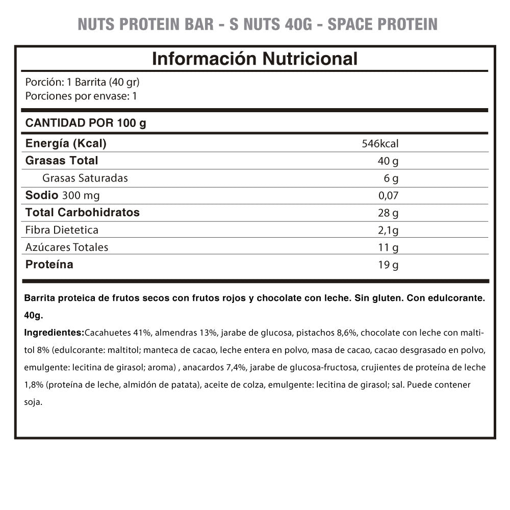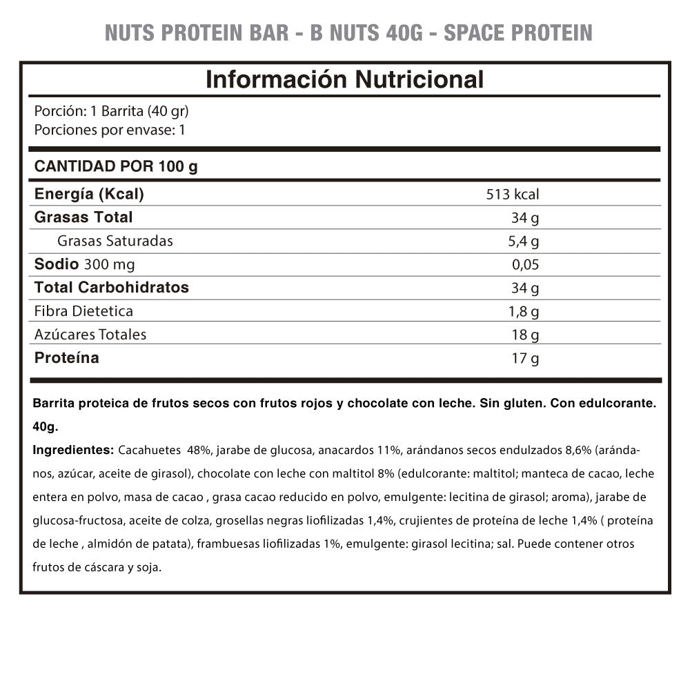 Disfruta de una colación saludable, sabrosa y funcional con la Barrita Nuts de Space Protein. Elaborada con una mezcla de frutos secos naturales, esta barrita es ideal para complementar tu nutrición diaria, aportar energía y apoyar tus objetivos fitness sin sacrificar sabor.