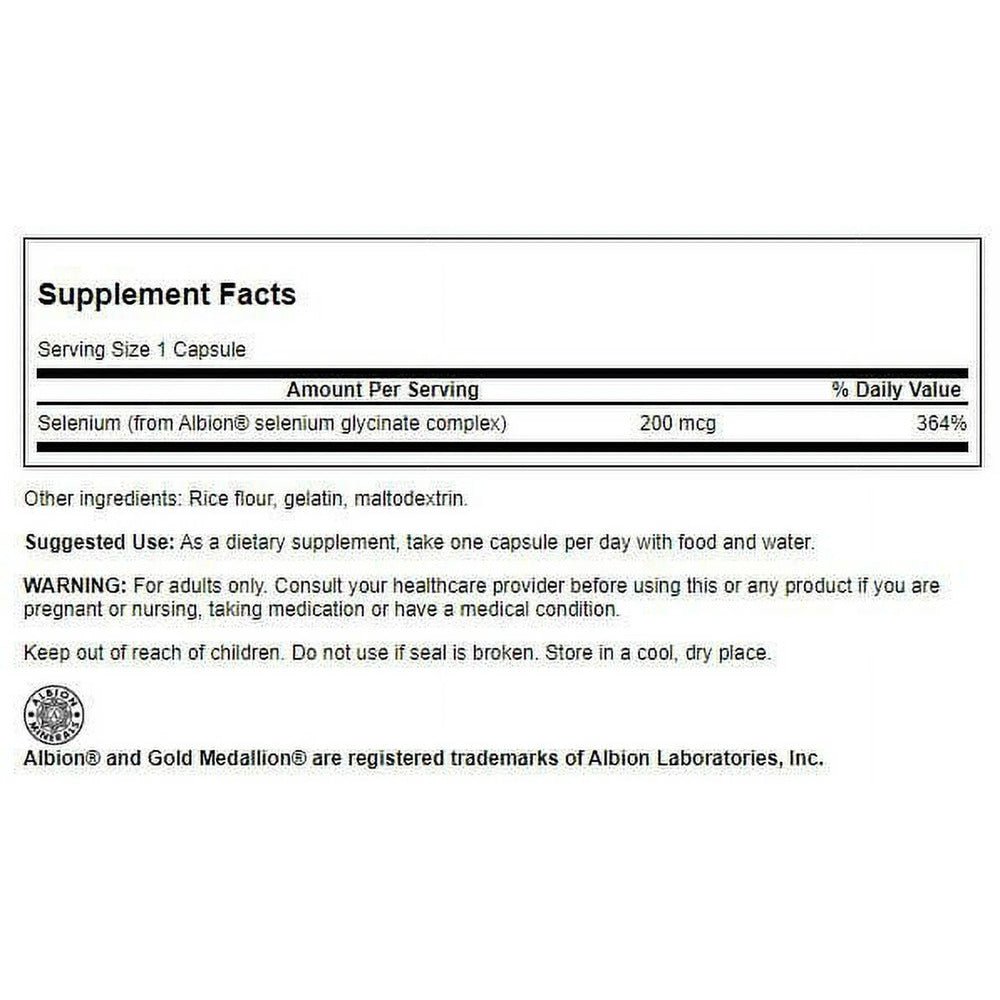 Concentración: 200 mcg de selenio (como Albion® amino acid chelate).