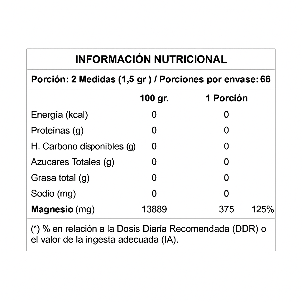 375 mg de magnesio elemental por porción (125% de la DDR).