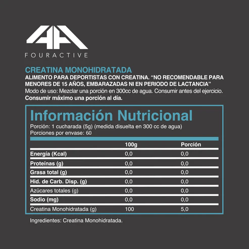 4Epic Creatine Monohydrate 300grs de 4Active te ofrece la pureza y eficacia de la creatina monohidratada en su forma más potente, aumenta la fuerza, mejora la resistencia y acelera la recuperación muscular.